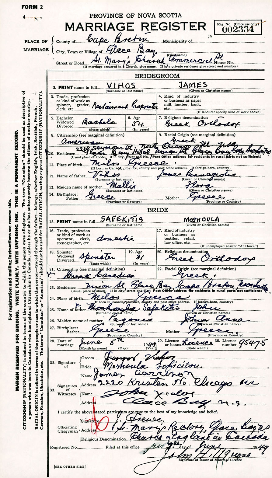 Registration: Year: 1949 number: 002334