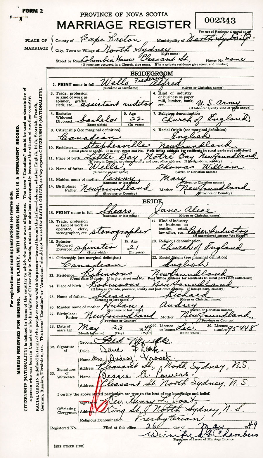 Registration: Year: 1949 number: 002343