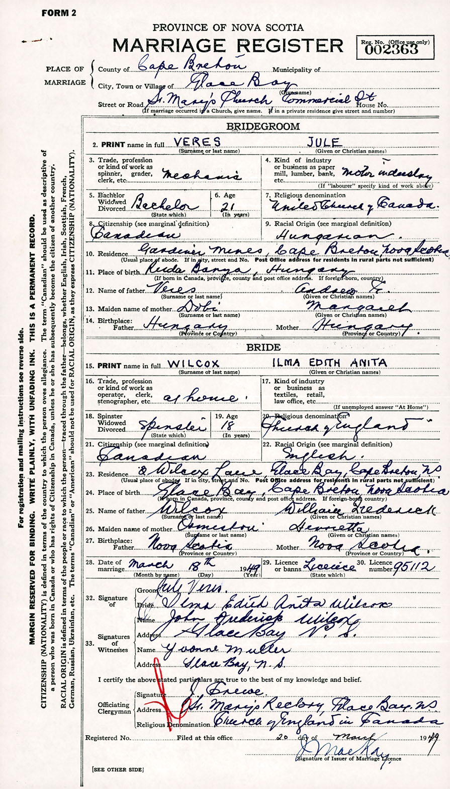 Registration: Year: 1949 number: 002363
