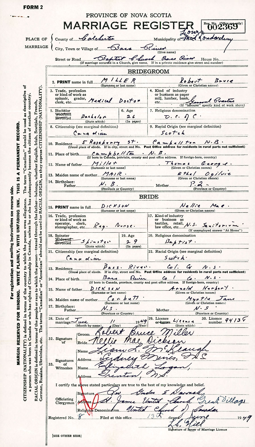Registration: Year: 1949 number: 002369