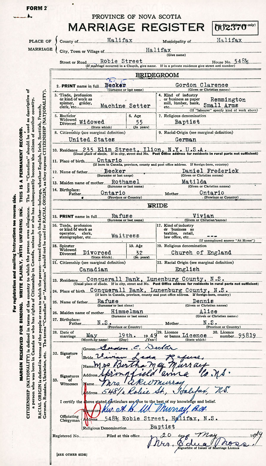 Registration: Year: 1949 number: 002370