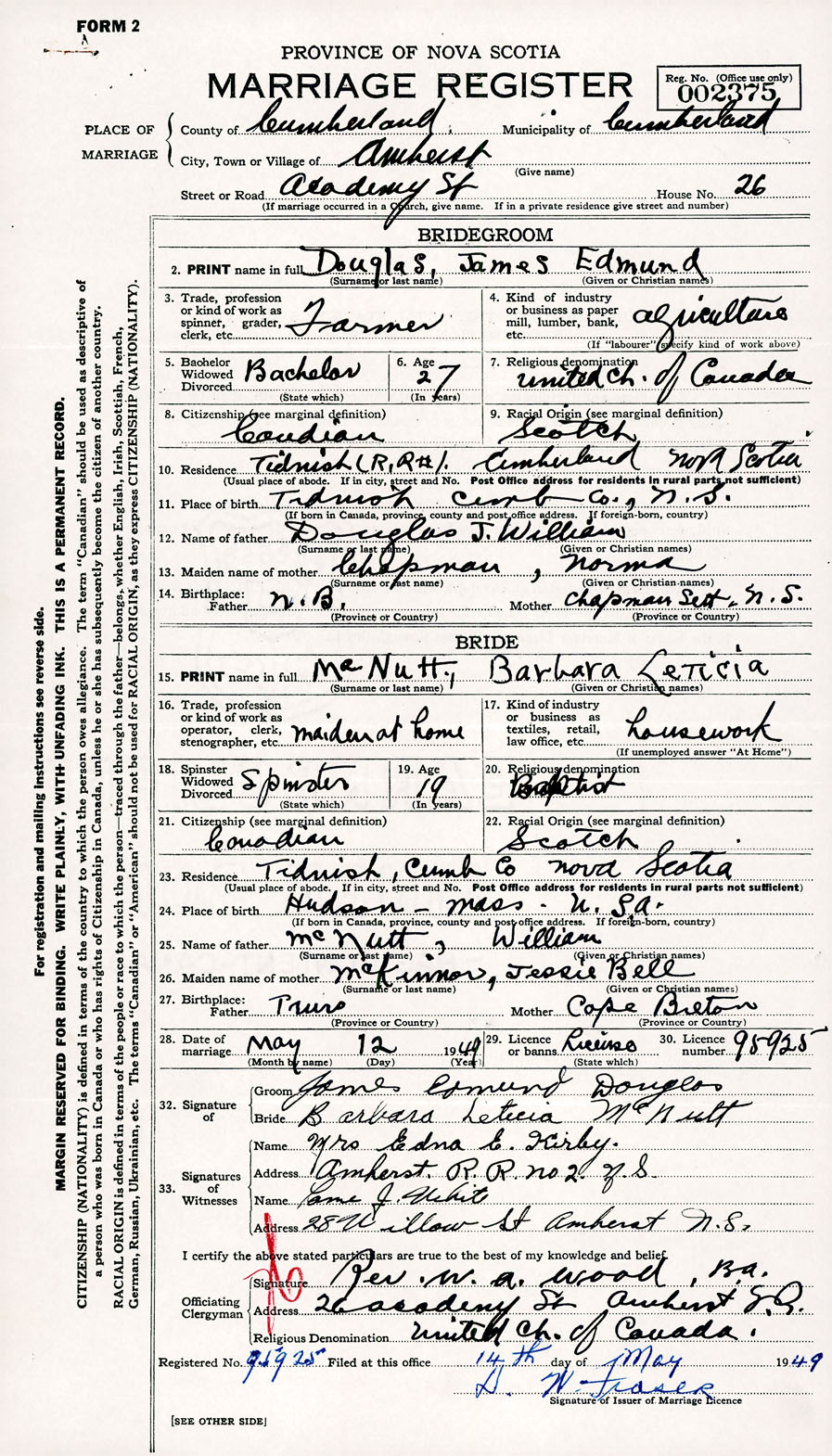 Registration: Year: 1949 number: 002375