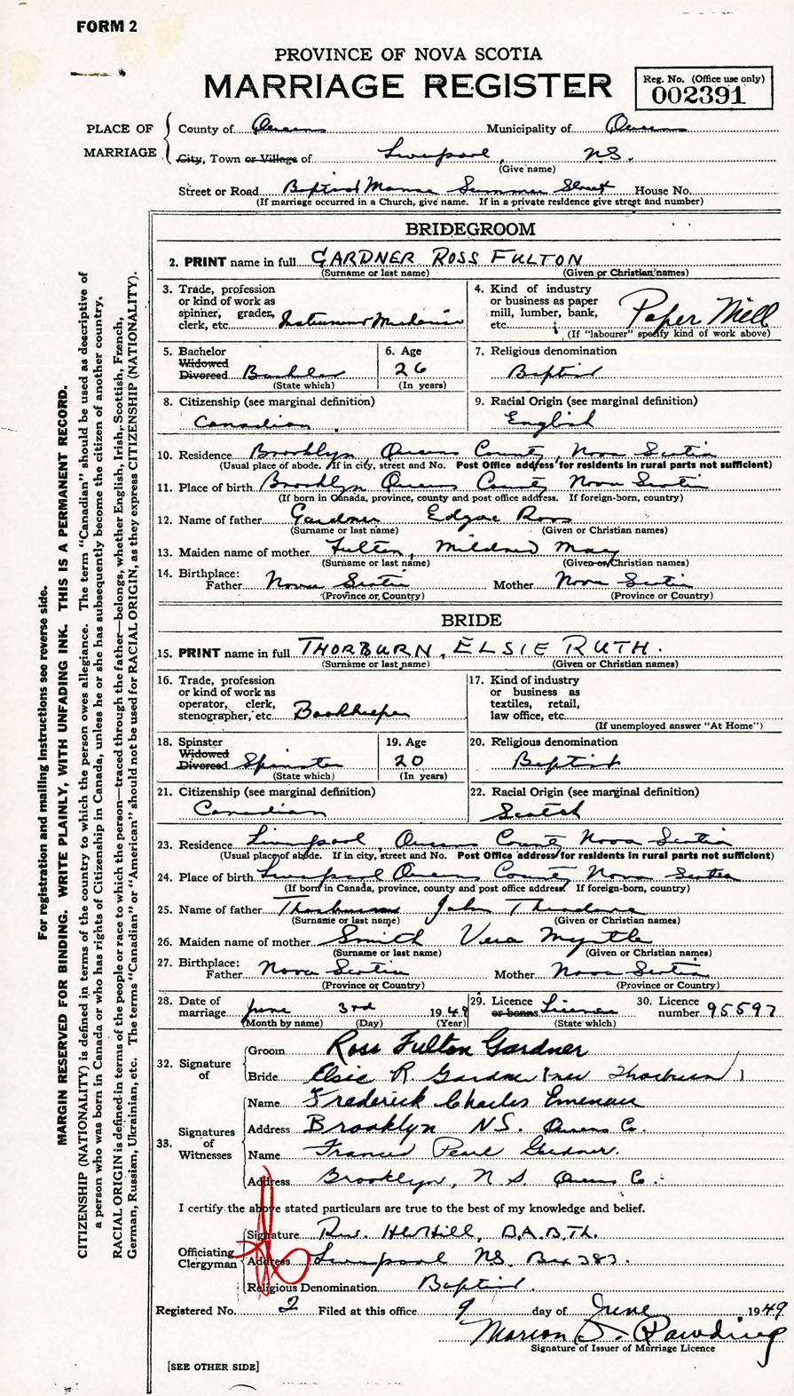 Registration: Year: 1949 number: 002391
