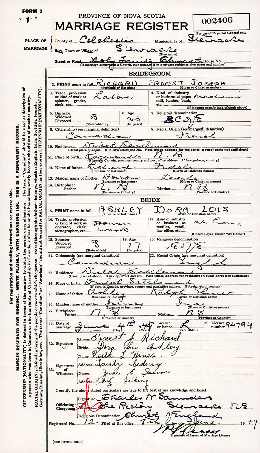 Registration: Year: 1949 number: 002406