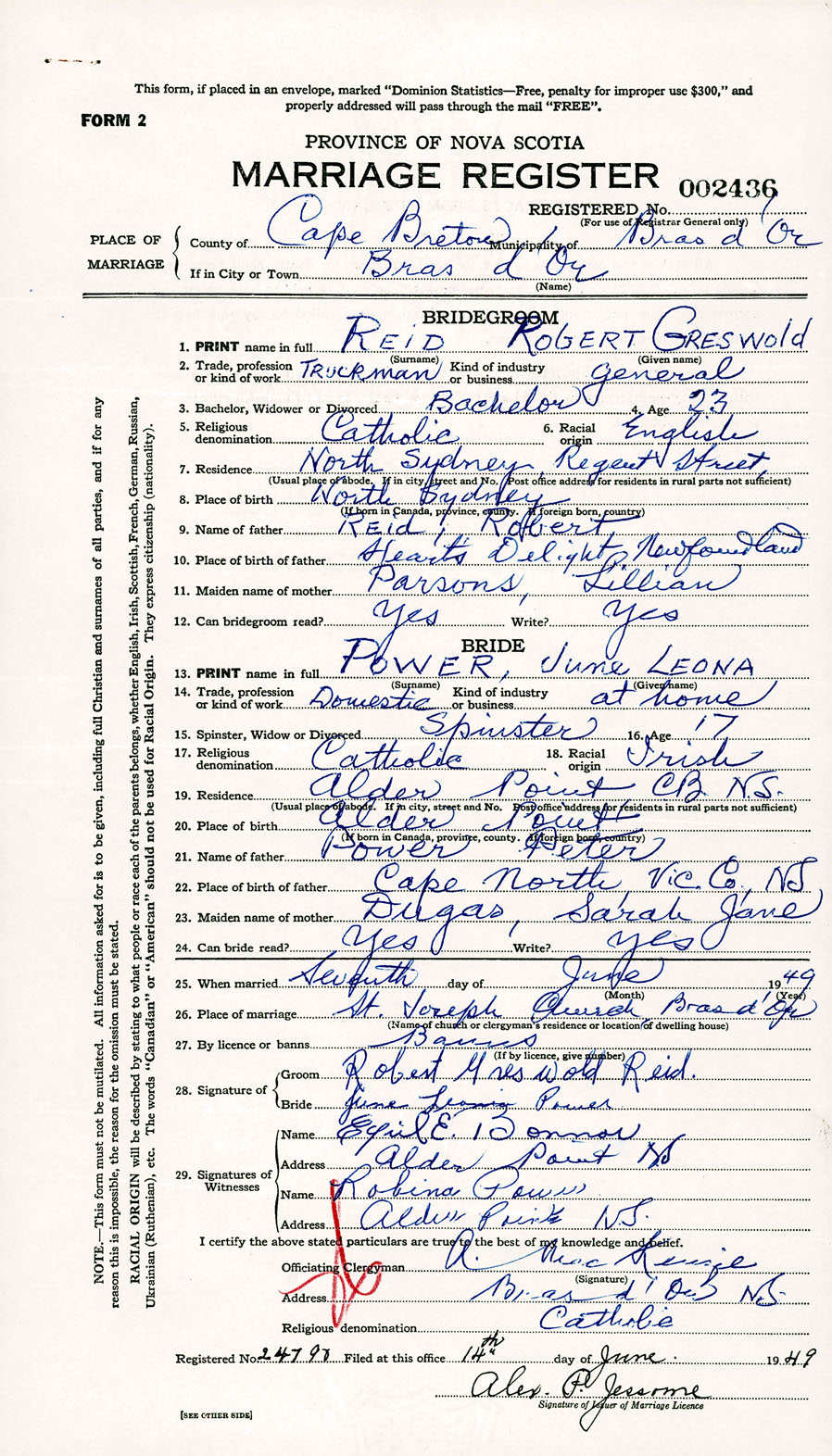 Registration: Year: 1949 number: 002436