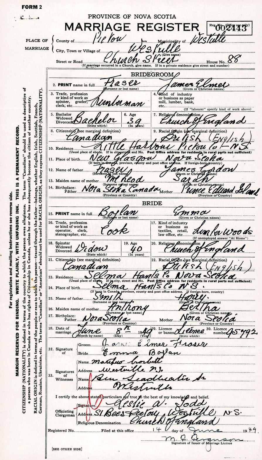 Registration: Year: 1949 number: 002443