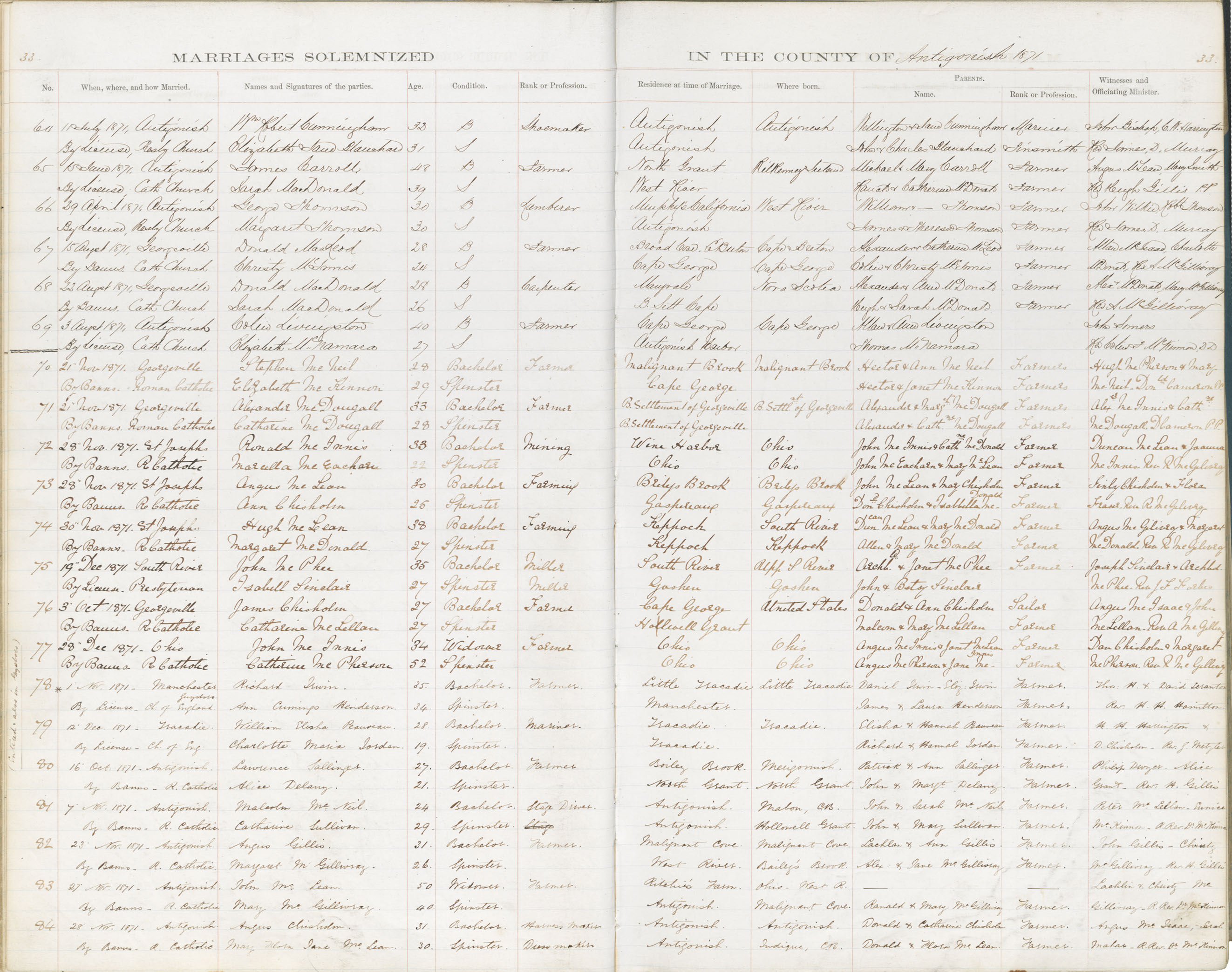 Registration: Year: 1871 book: 1803 page: 33 number: 84