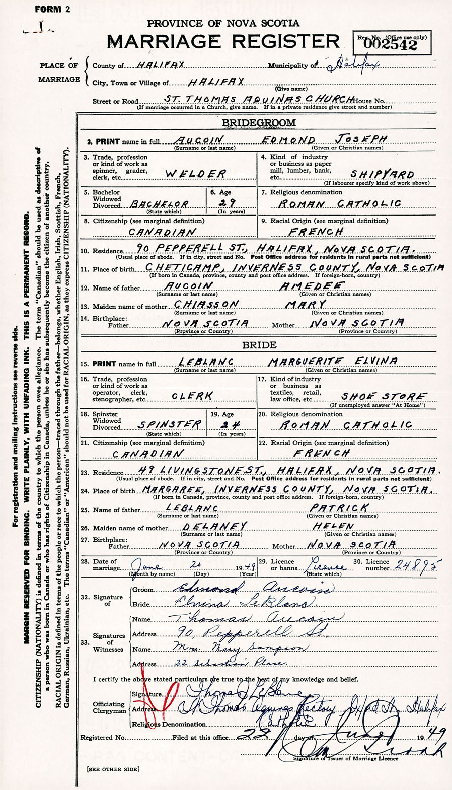 Registration: Year: 1949 number: 002542