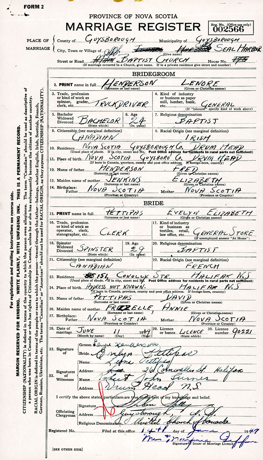 Registration: Year: 1949 number: 002566