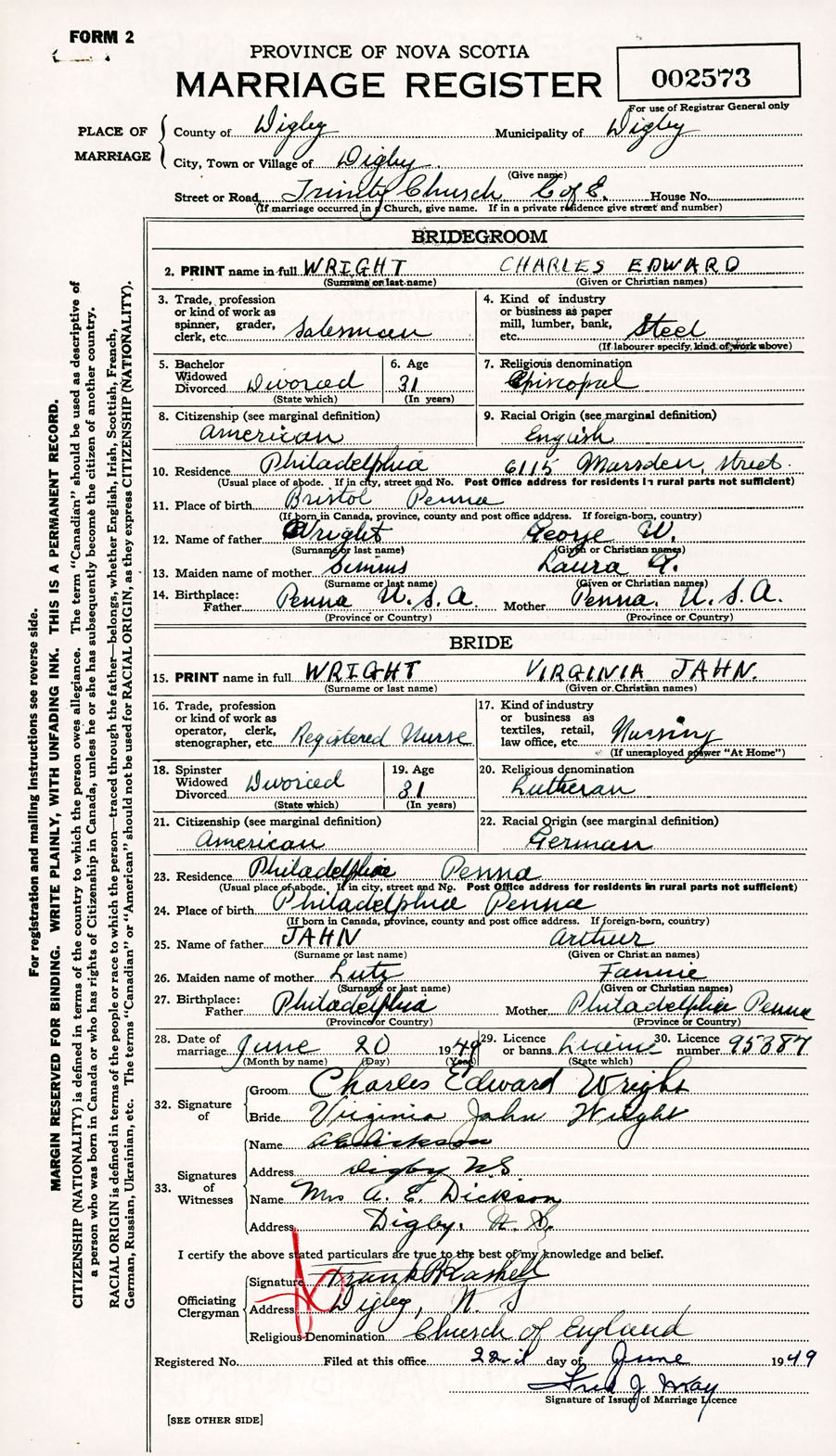 Registration: Year: 1949 number: 002573