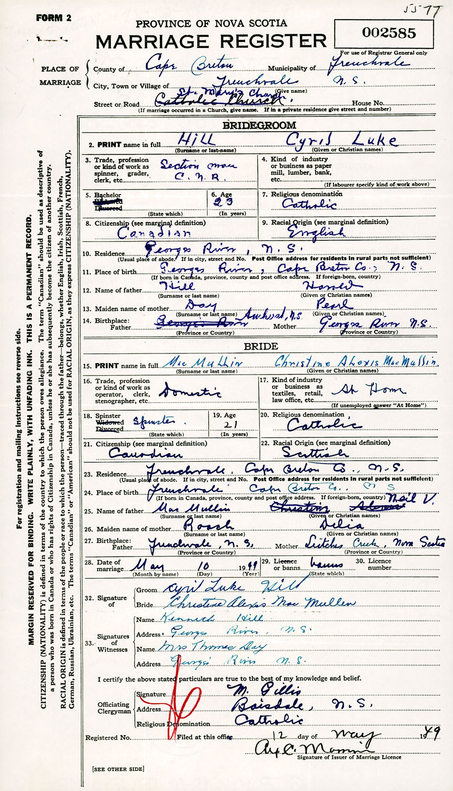 Registration: Year: 1949 number: 002585
