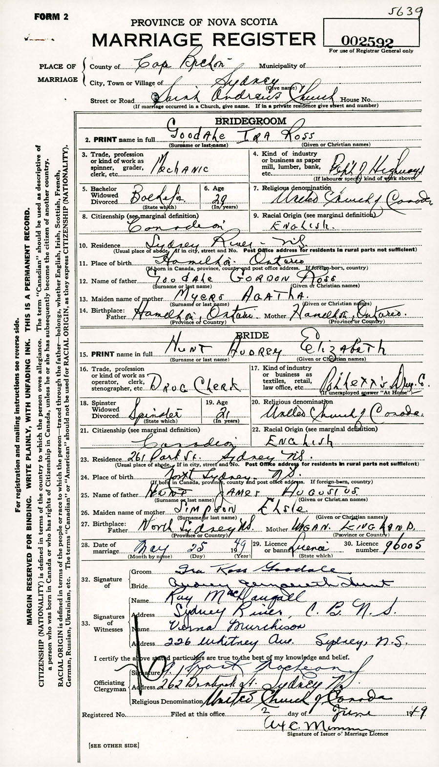 Registration: Year: 1949 number: 002592