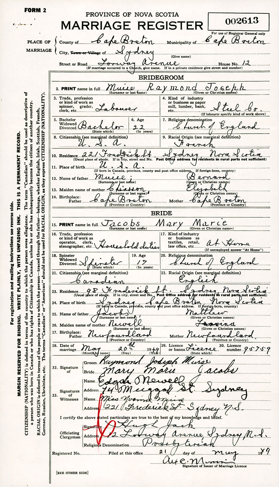 Registration: Year: 1949 number: 002613
