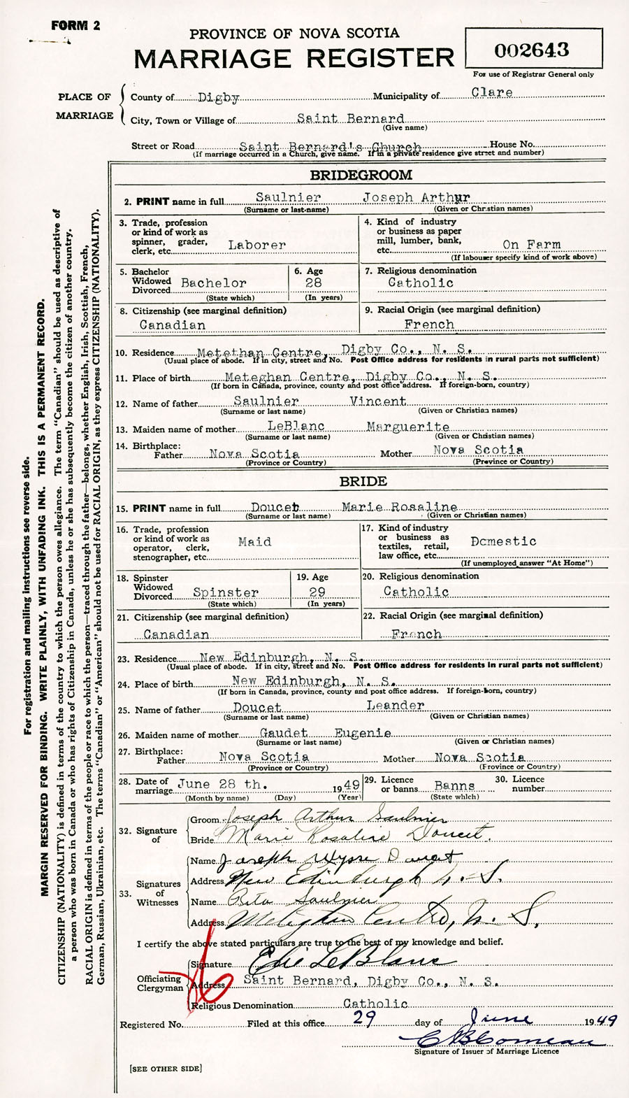 Registration: Year: 1949 number: 002643