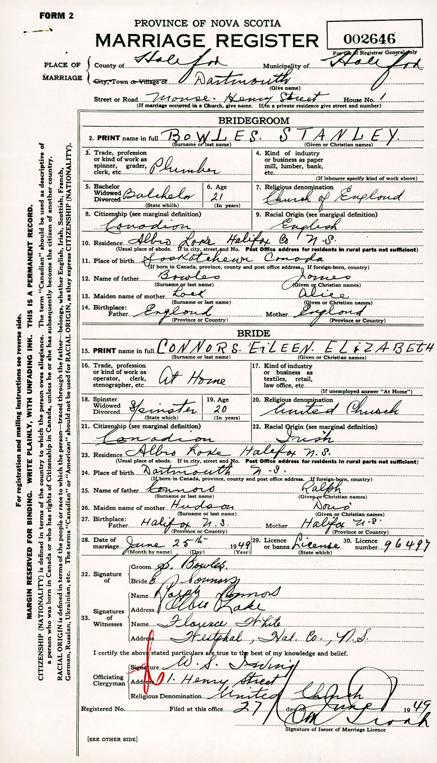 Registration: Year: 1949 number: 002646