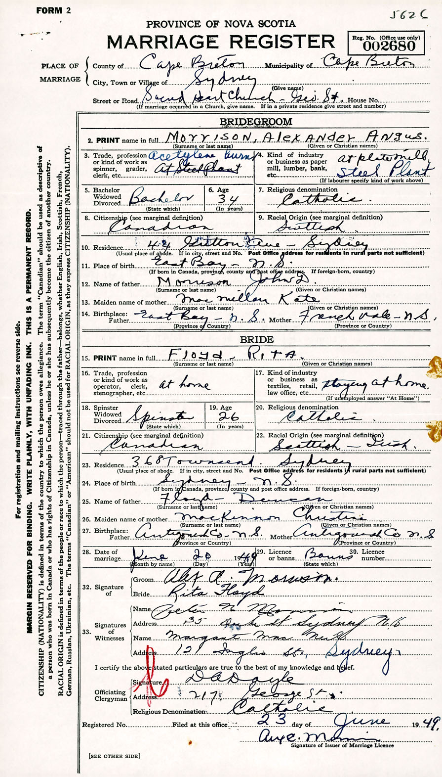 Registration: Year: 1949 number: 002680