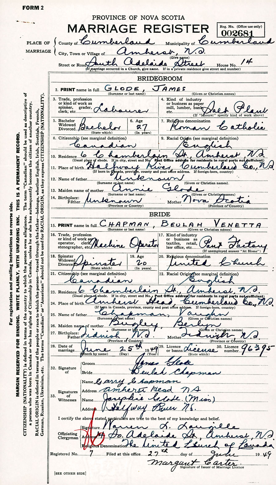 Registration: Year: 1949 number: 002681
