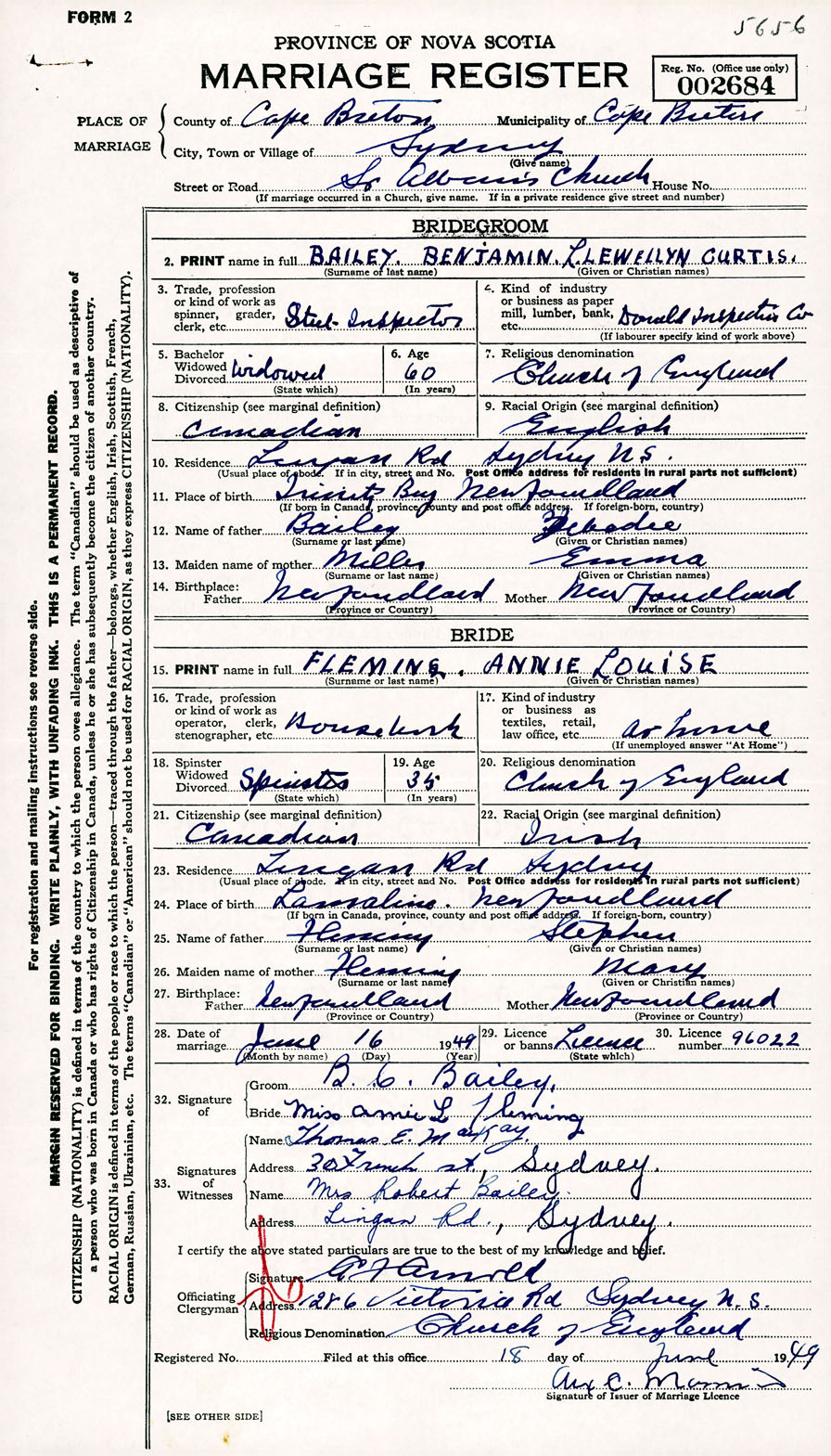 Registration: Year: 1949 number: 002684