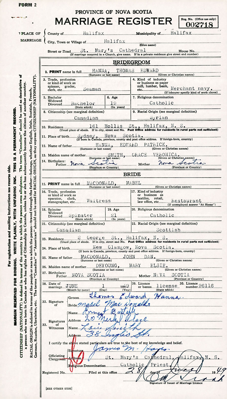 Registration: Year: 1949 number: 002718