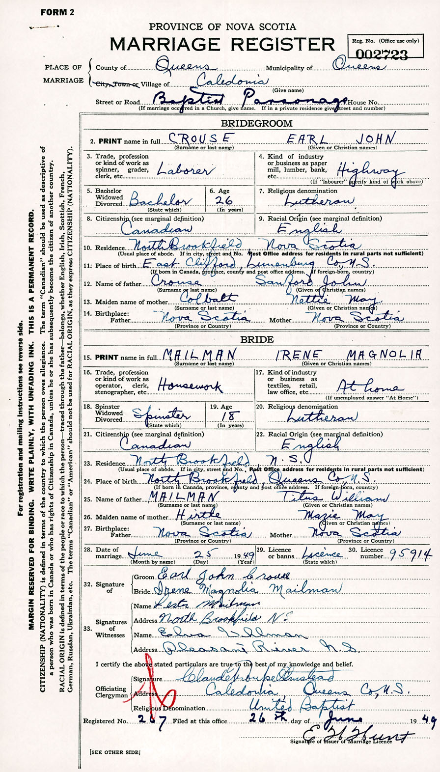 Registration: Year: 1949 number: 002723