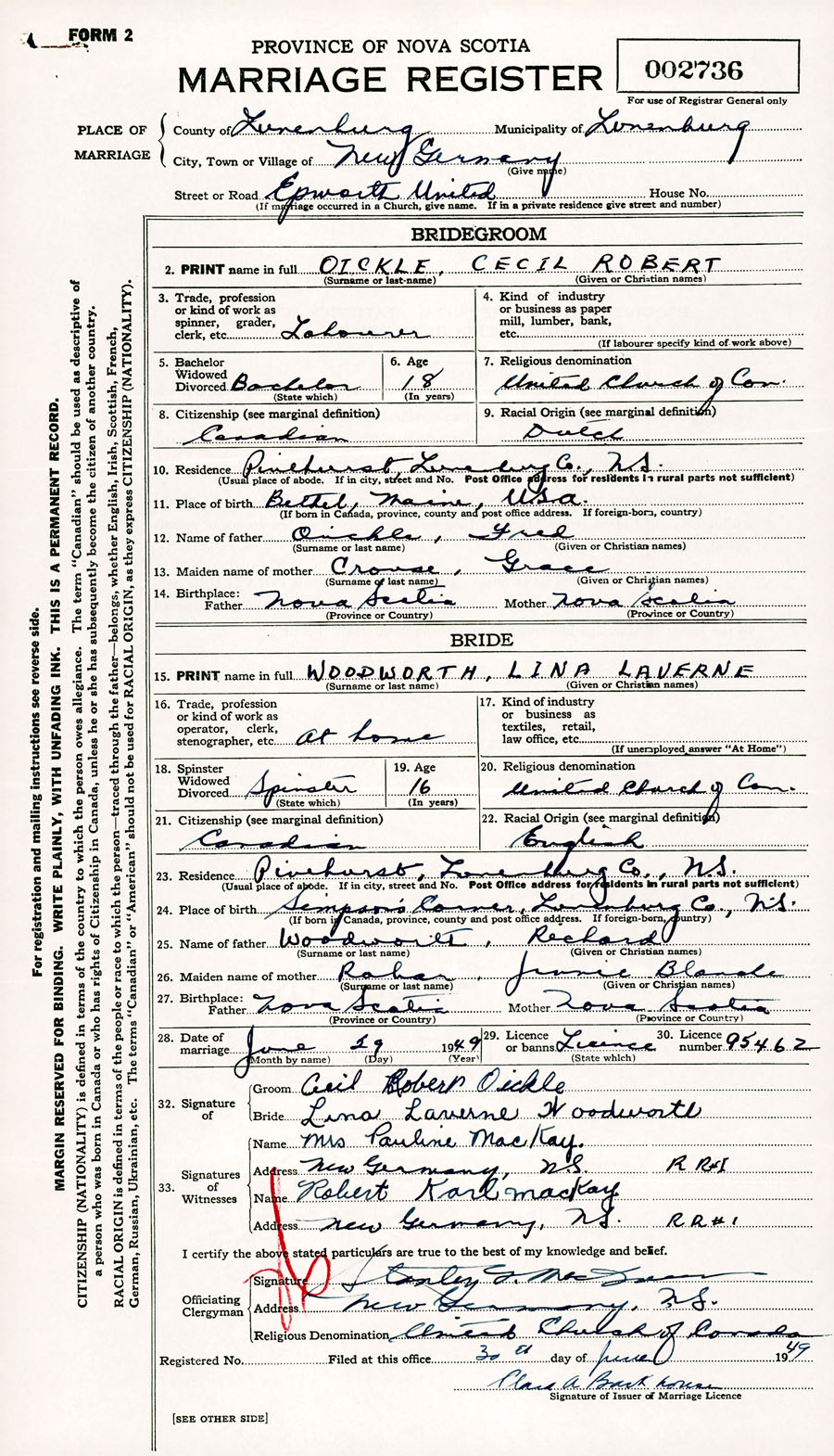 Registration: Year: 1949 number: 002736