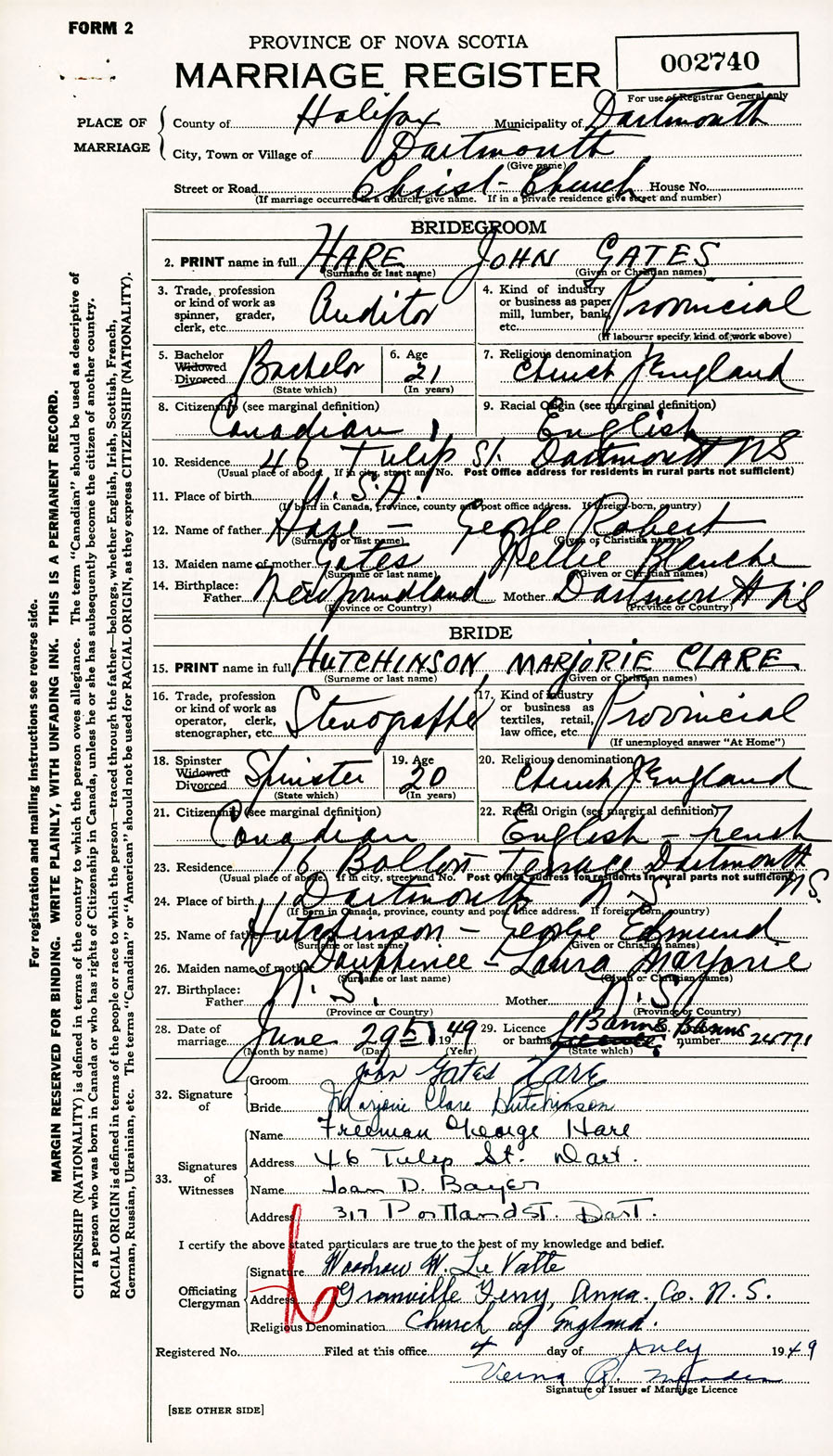 Registration: Year: 1949 number: 002740