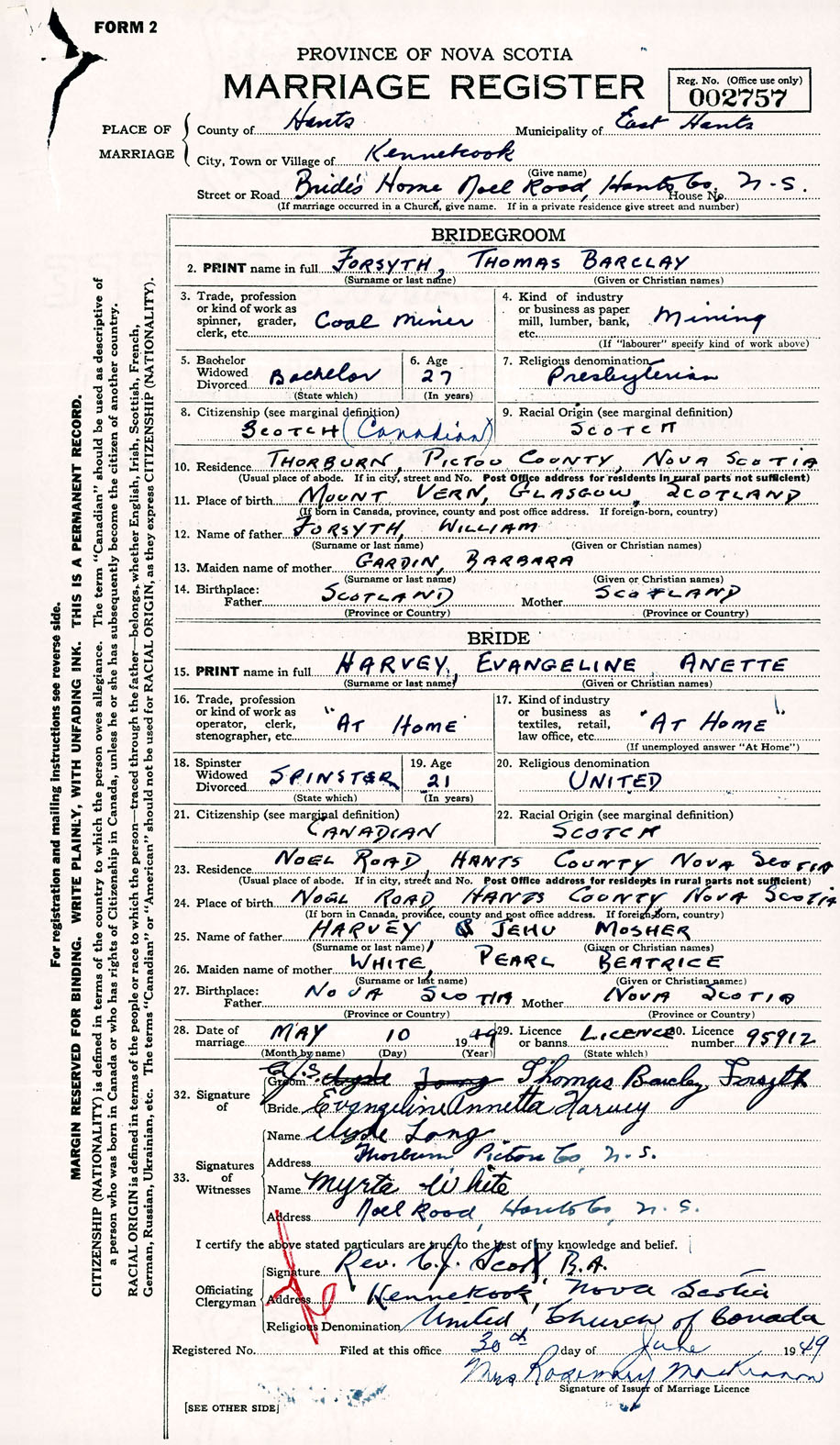 Registration: Year: 1949 number: 002757