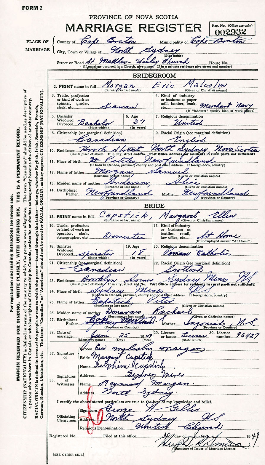 Registration: Year: 1949 number: 002932