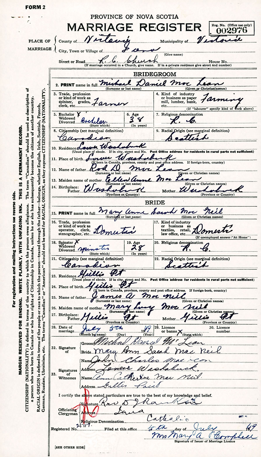 Registration: Year: 1949 number: 002976