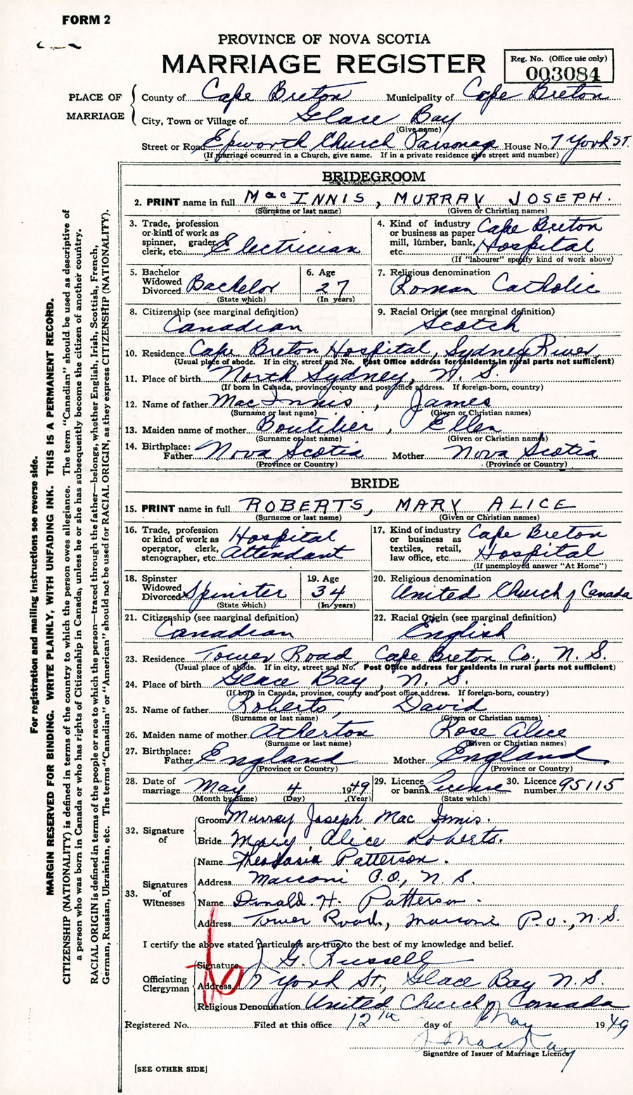 Registration: Year: 1949 number: 003084
