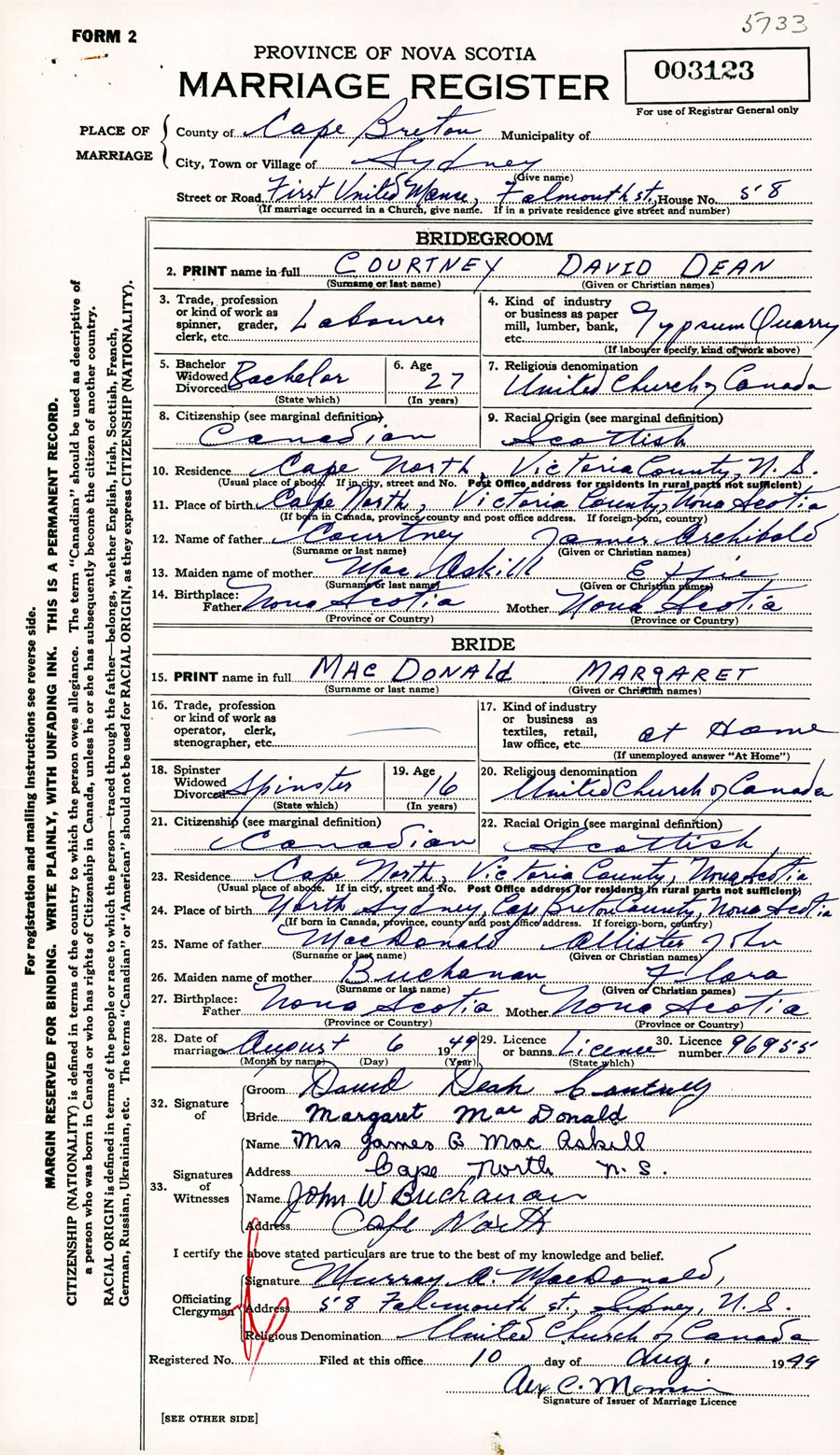 Registration: Year: 1949 number: 003123