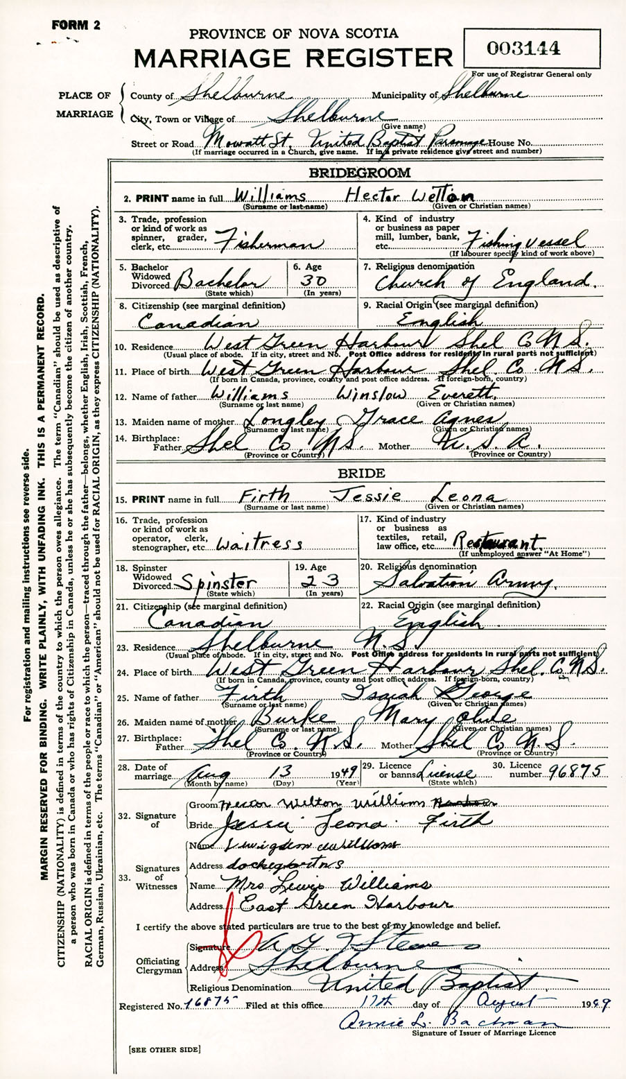 Registration: Year: 1949 number: 003144