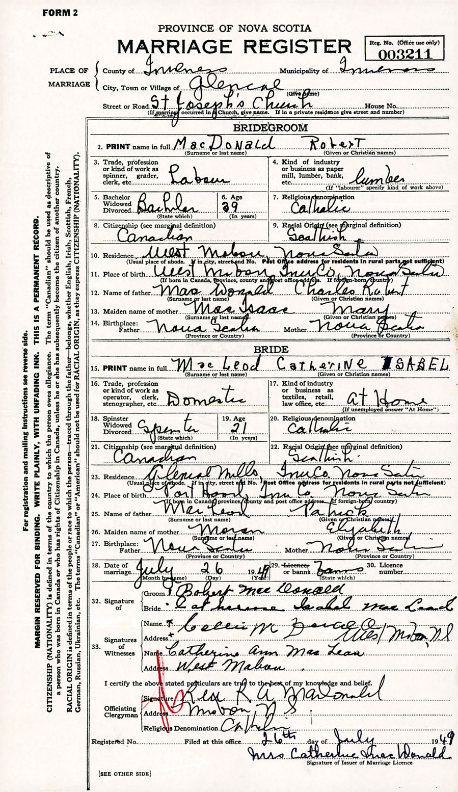 Registration: Year: 1949 number: 003211