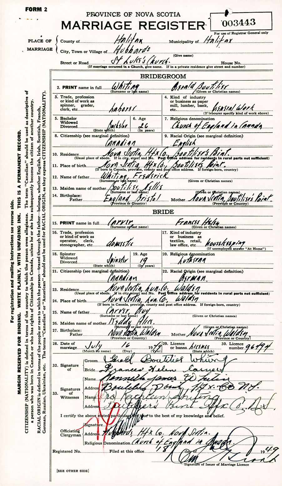 Registration: Year: 1949 number: 003443