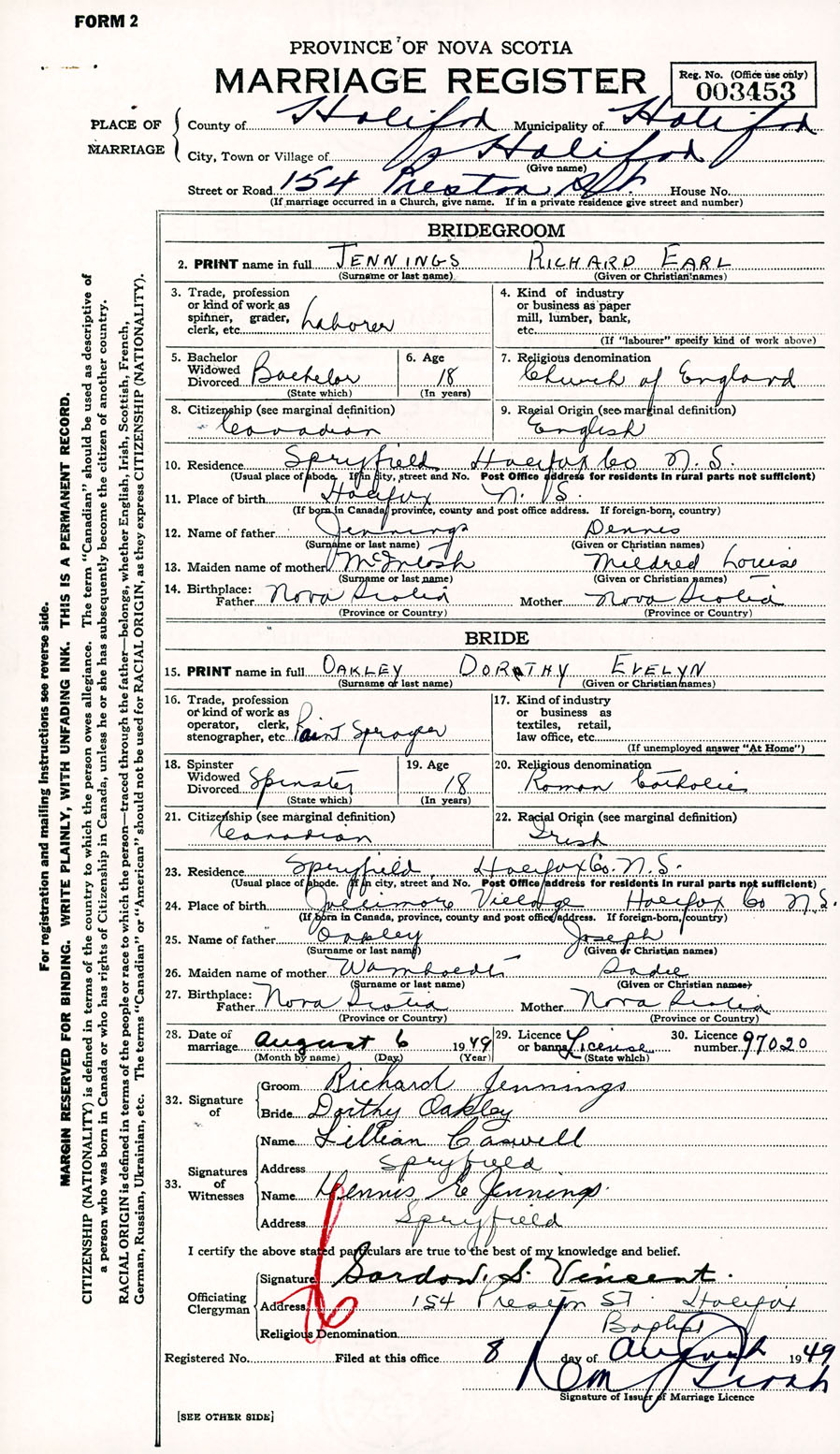 Registration: Year: 1949 number: 003453
