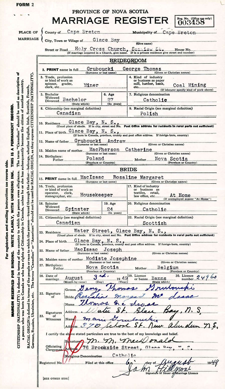 Registration: Year: 1949 number: 003458