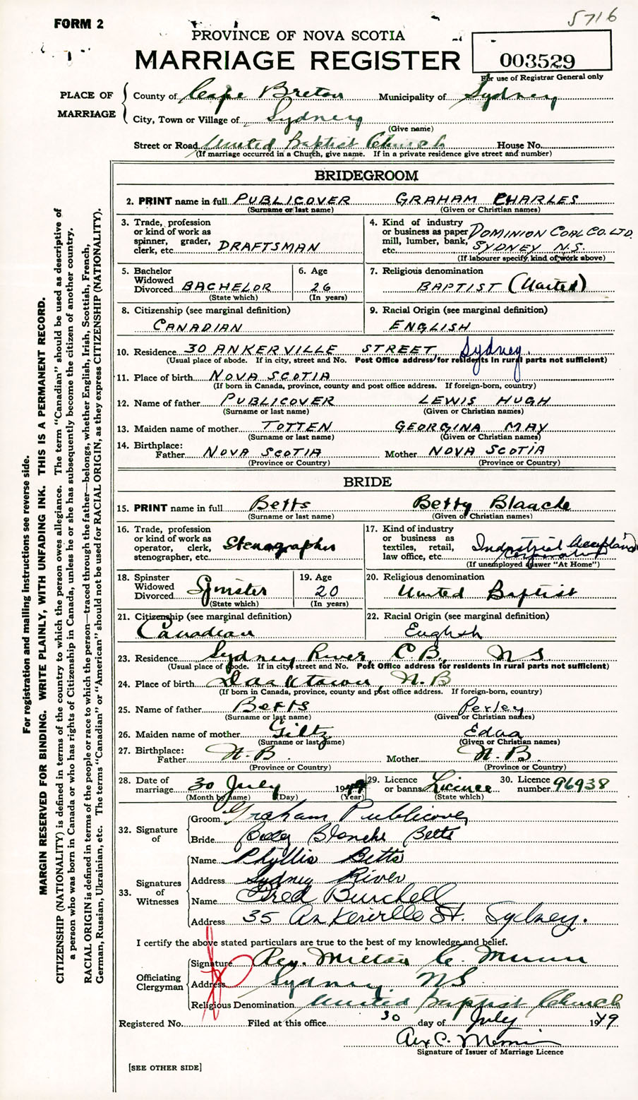 Registration: Year: 1949 number: 003529