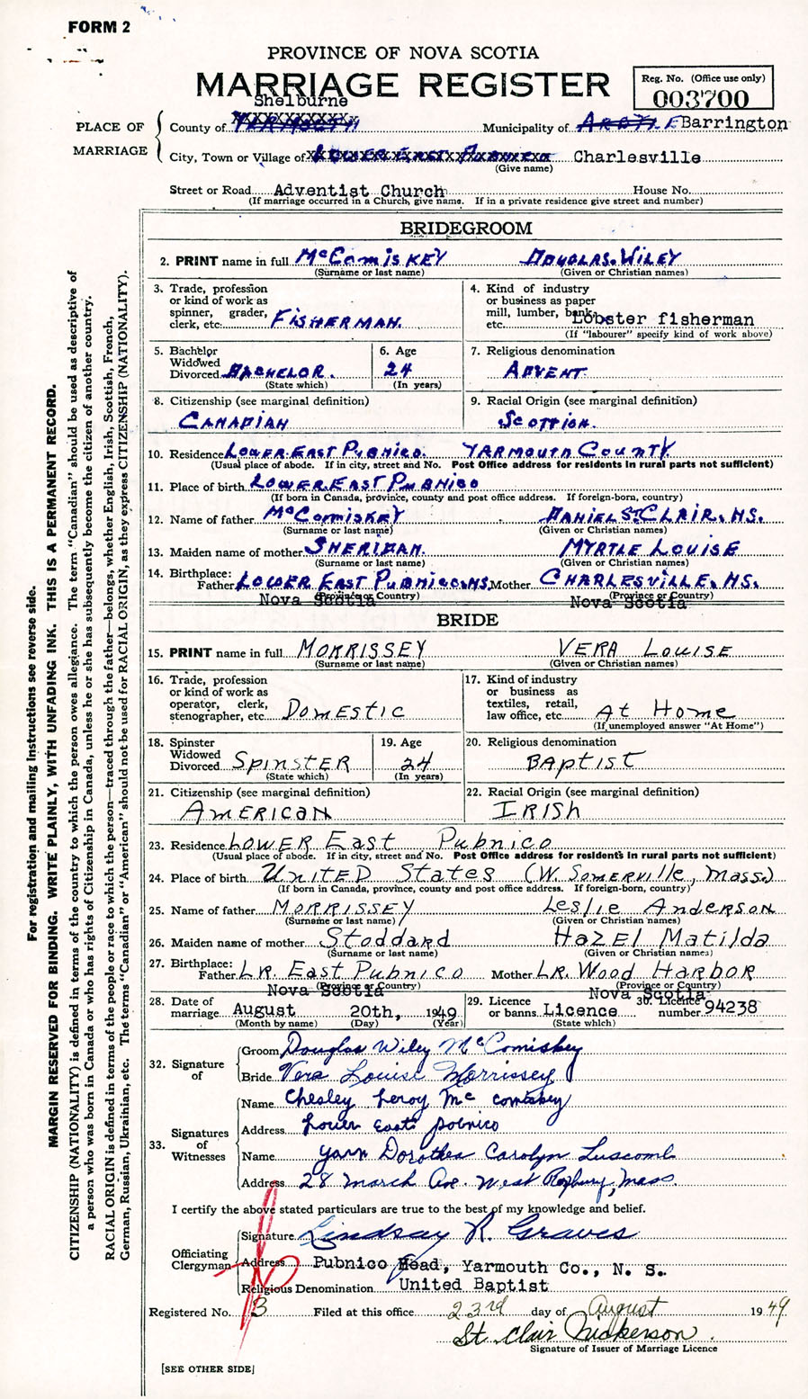 Registration: Year: 1949 number: 003700