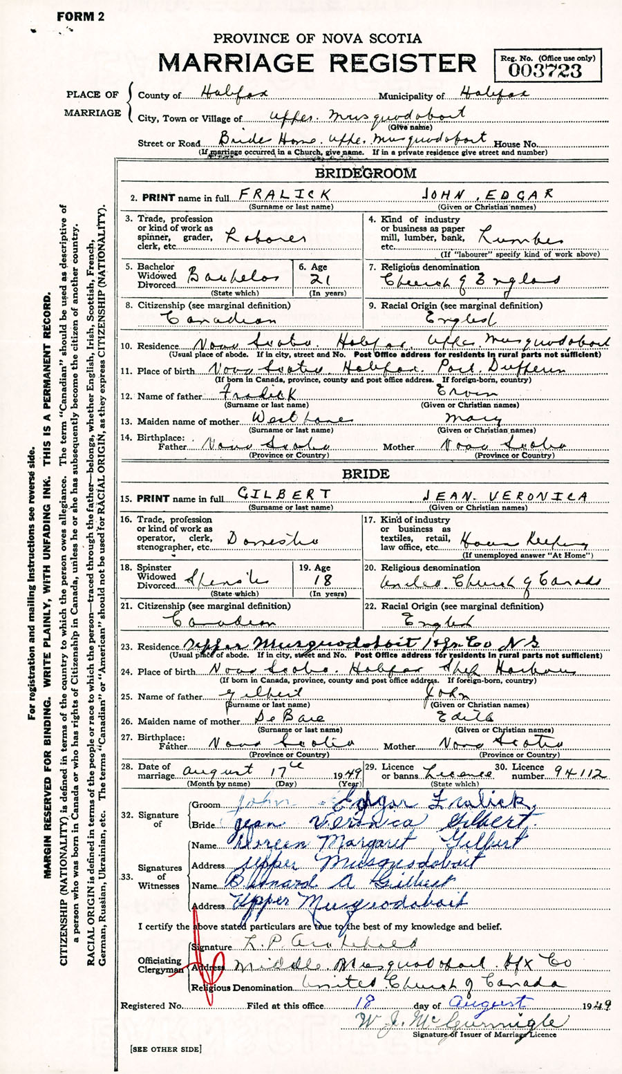 Registration: Year: 1949 number: 003723