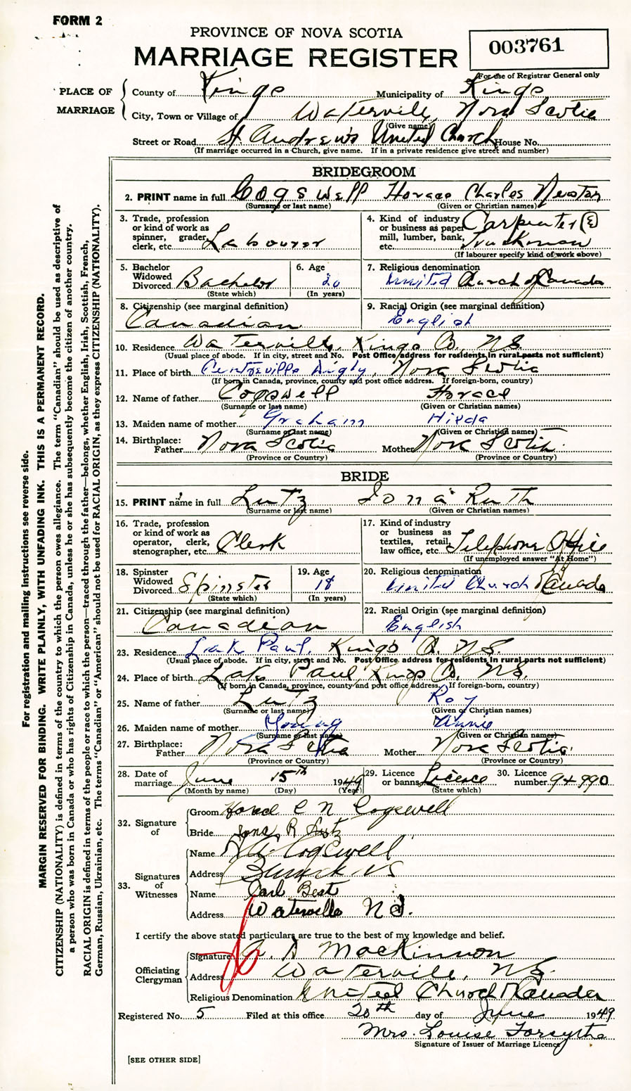 Registration: Year: 1949 number: 003761