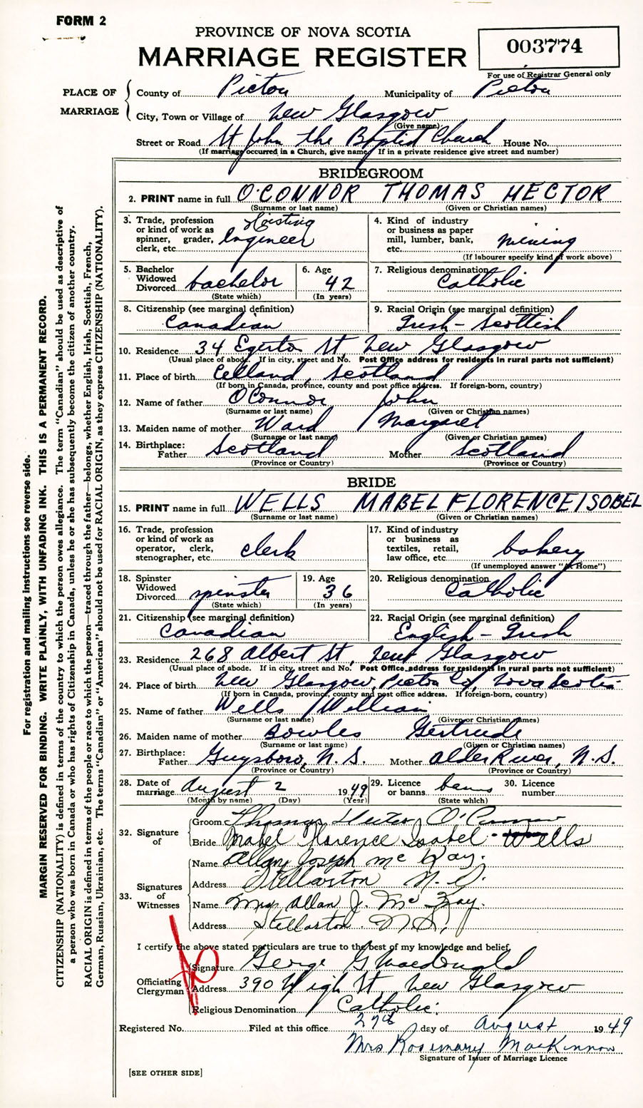 Registration: Year: 1949 number: 003774