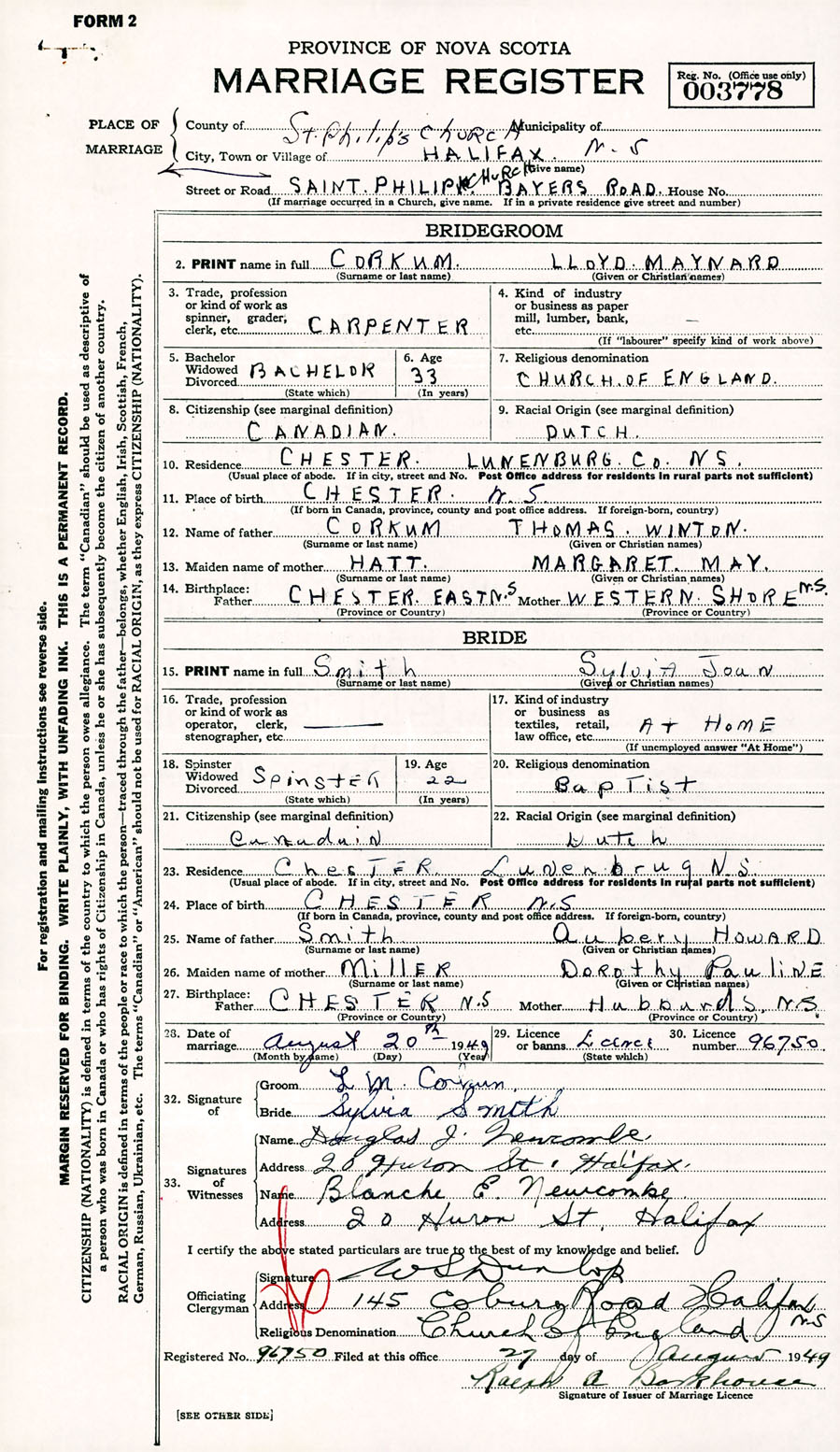 Registration: Year: 1949 number: 003778