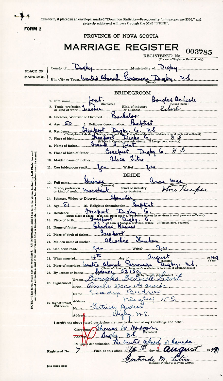 Registration: Year: 1949 number: 003785