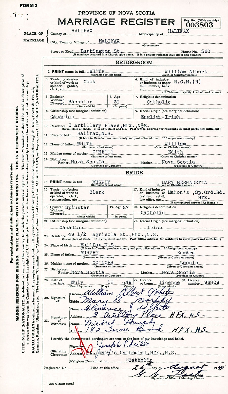 Registration: Year: 1949 number: 003803