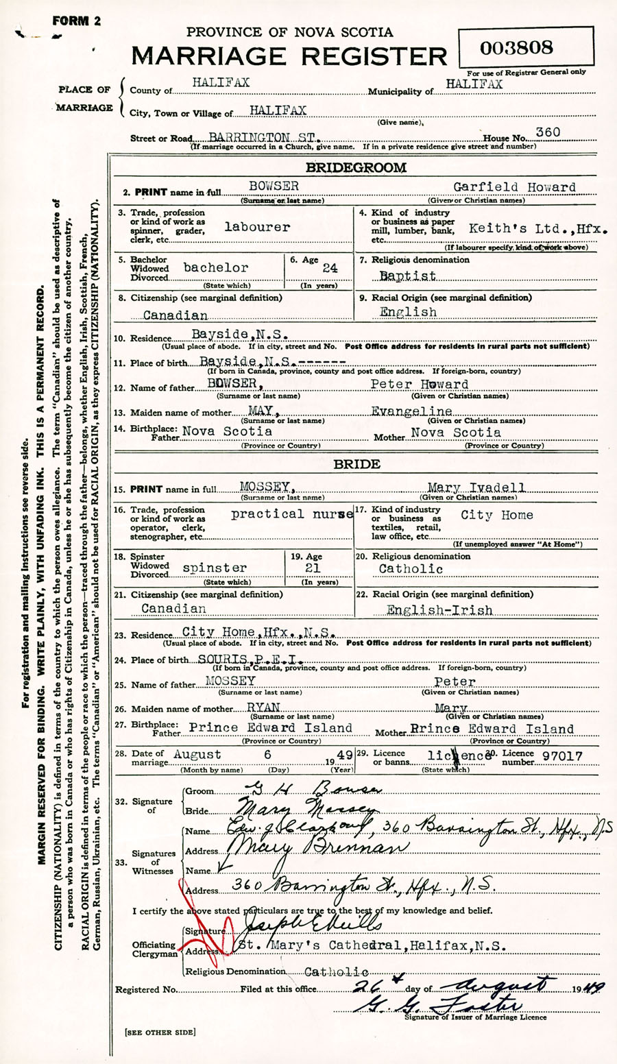 Registration: Year: 1949 number: 003808