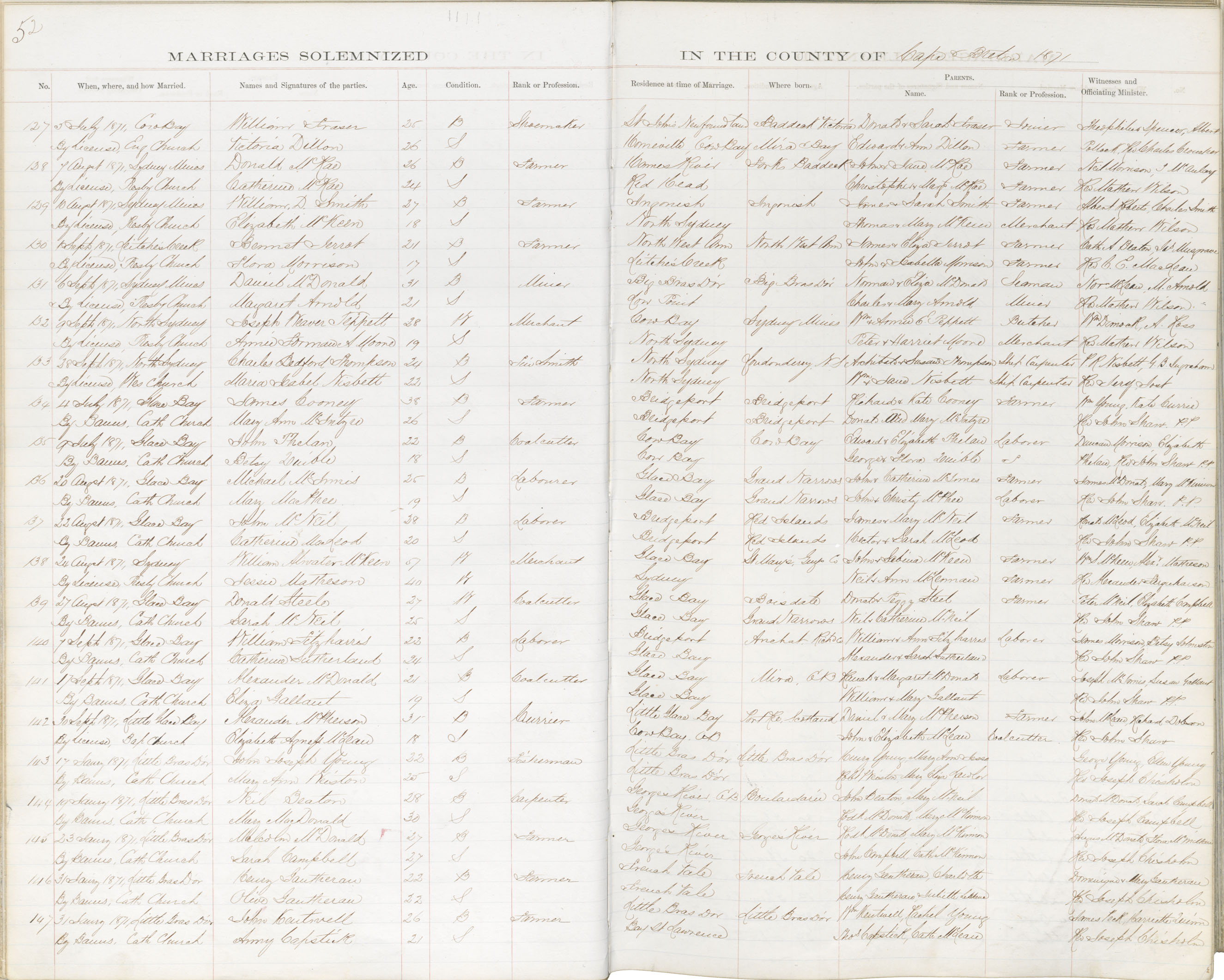 Registration: Year: 1871 book: 1804 page: 52 number: 127