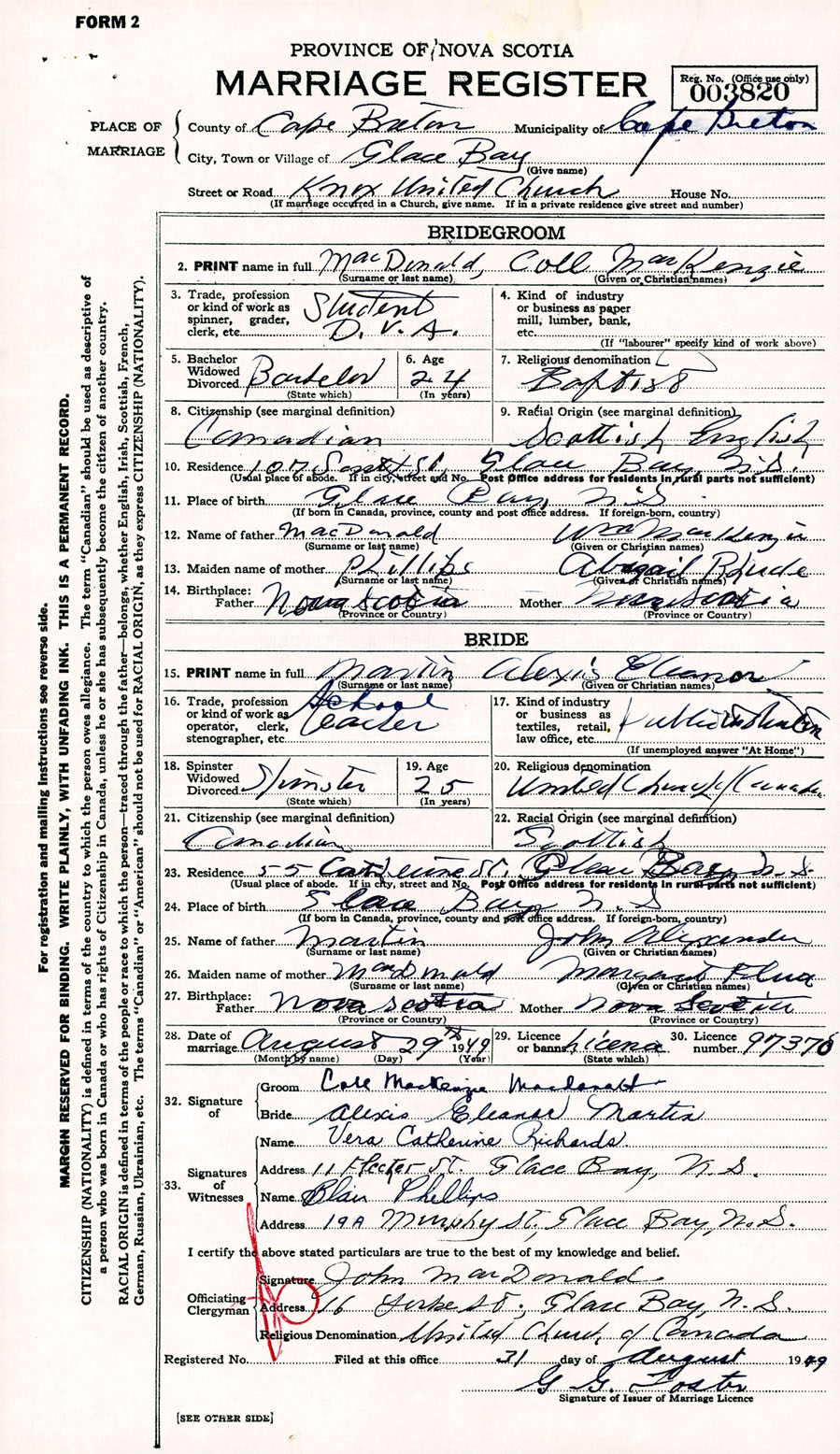 Registration: Year: 1949 number: 003820