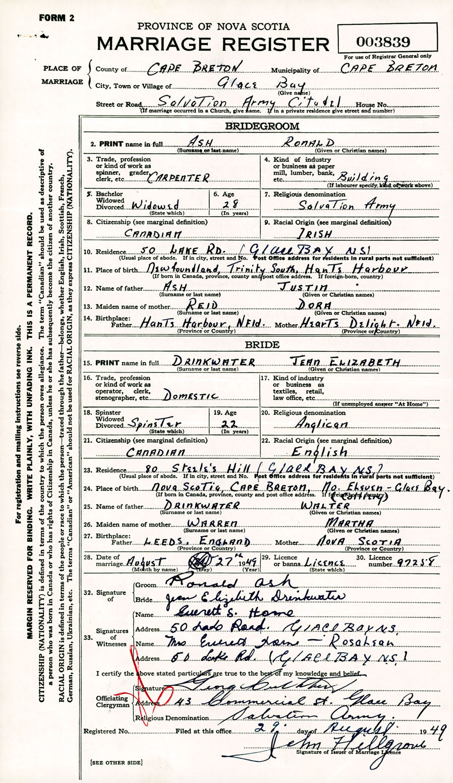 Registration: Year: 1949 number: 003839