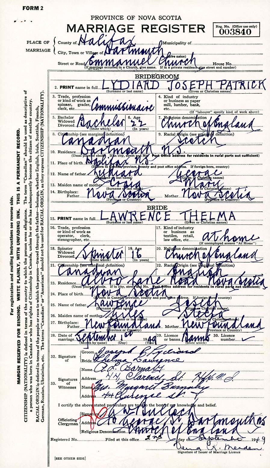 Registration: Year: 1949 number: 003840