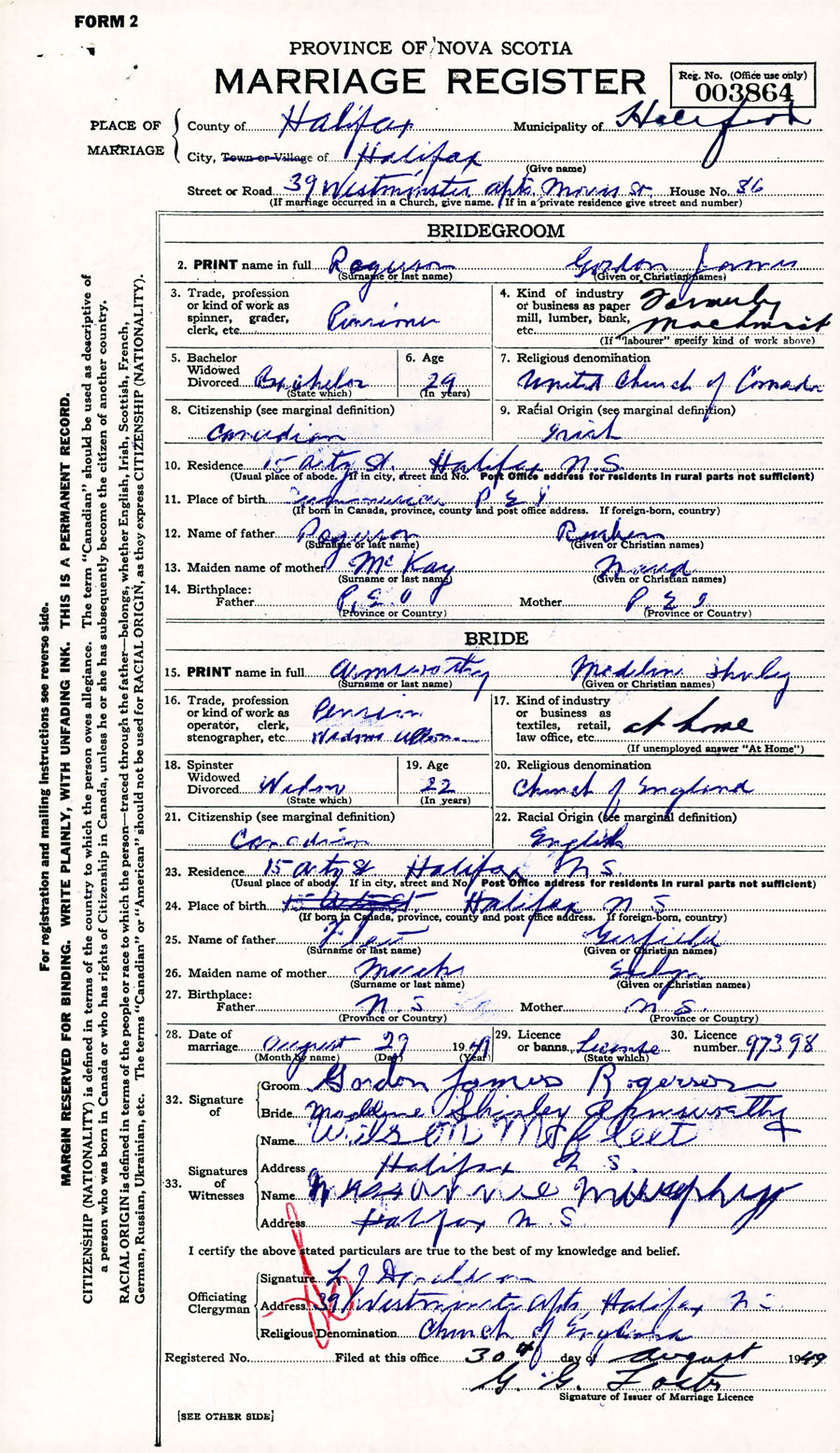 Registration: Year: 1949 number: 003864